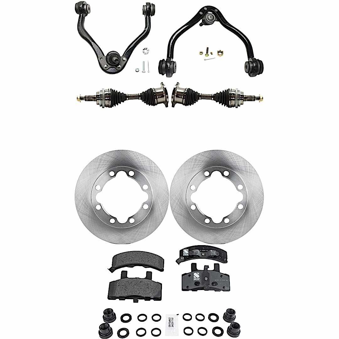 JC Whitney 8-Piece Kit Front Axle Assembly with Brake Discs, Brake Pad Set, and Control Arms, Four Wheel Drive, with 8,600 lbs. GVW