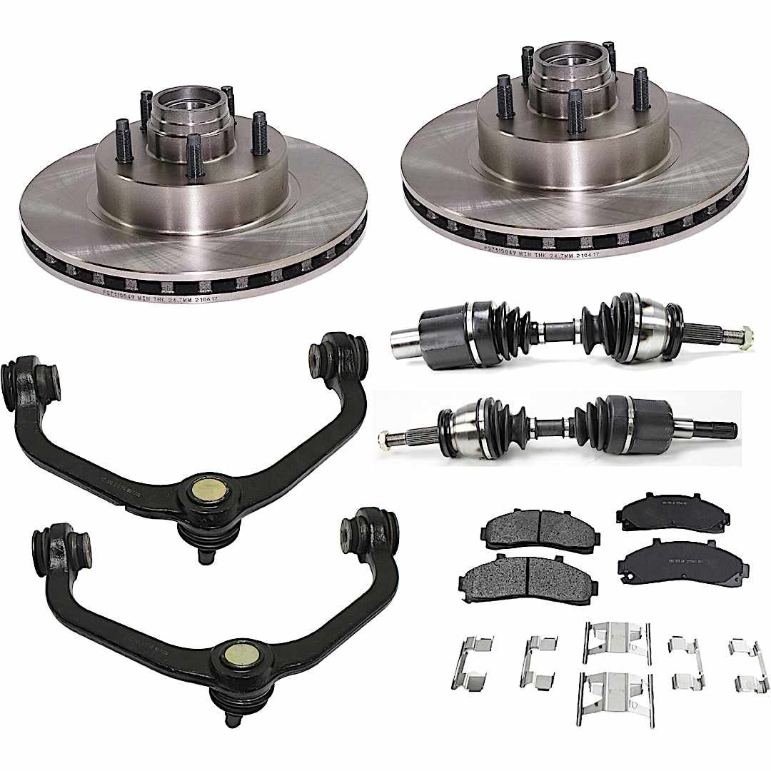 JC Whitney 8-Piece Kit Front Axle Assembly with Brake Discs, Brake Pad Set, and Control Arms, Rear Wheel Drive, With Front Coil Spring