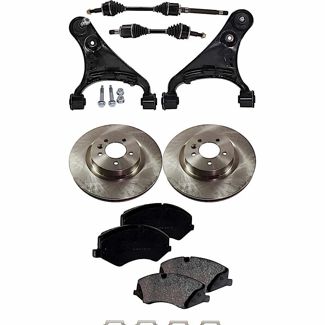 JC Whitney 8-Piece Kit Front Axle Assembly with Brake Discs, Brake Pad Set, and Control Arms