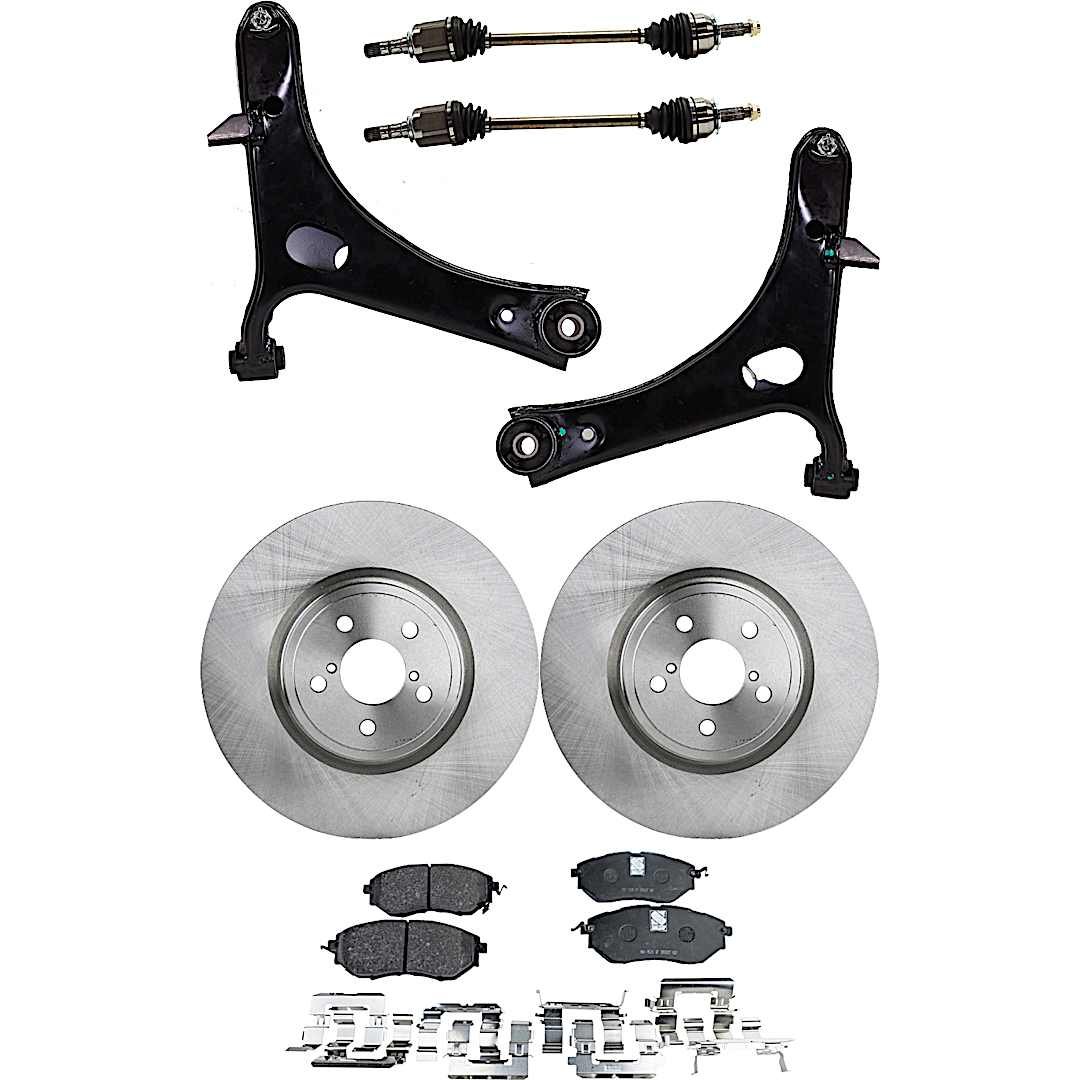 JC Whitney 8-Piece Kit Front, Driver and Passenger Side Axle Assembly, All Wheel Drive, Includes Brake Discs, Brake Pad Sets, and Control Arms