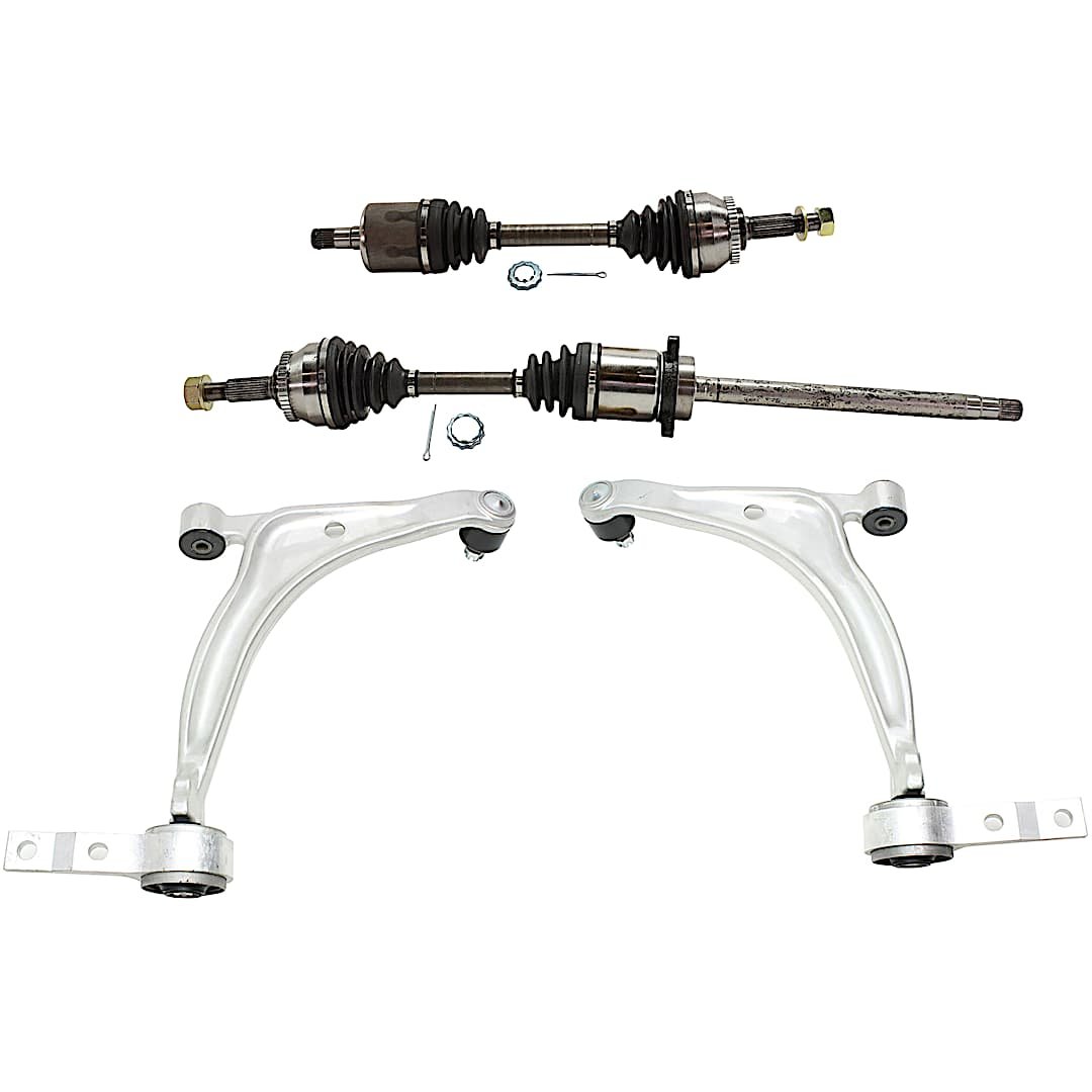 JC Whitney 8-Piece Kit Front, Driver and Passenger Side Axle Assembly, Wheel Drive, Automatic Transmission, Includes Brake Discs, Brake Pad Sets, and Control Arms