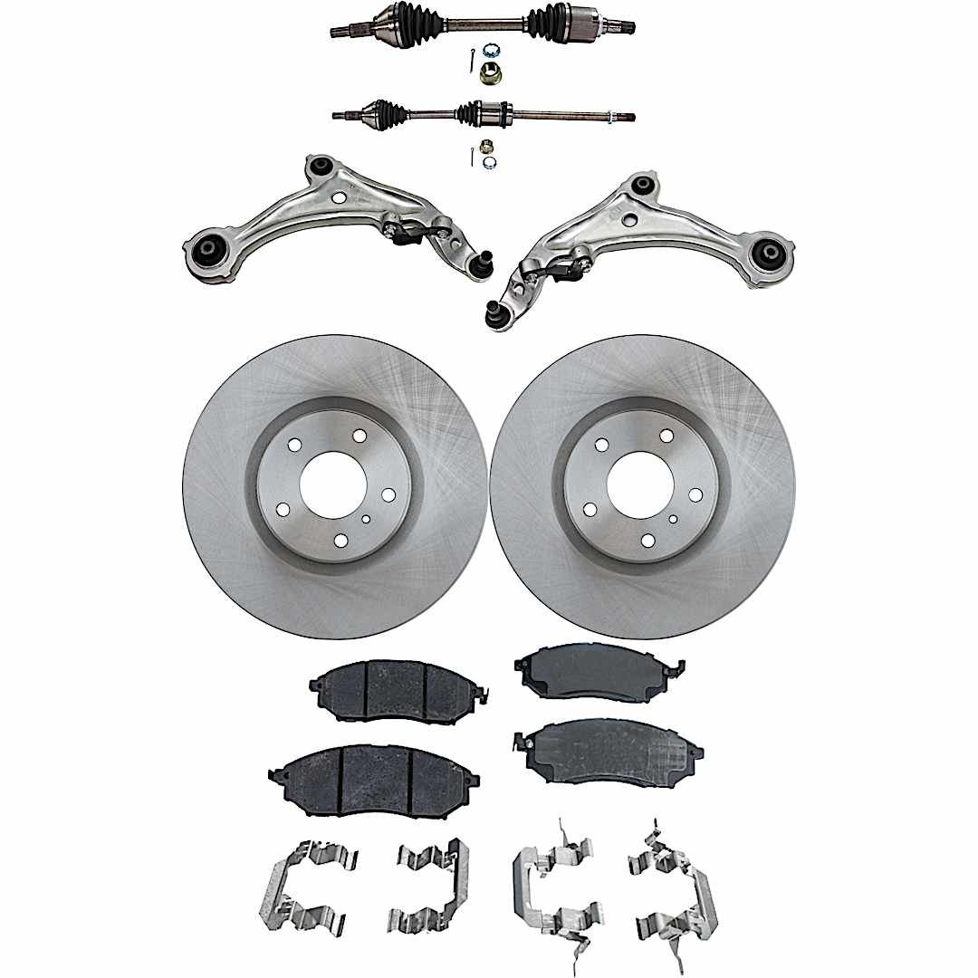 JC Whitney 8-Piece Kit Front, Driver and Passenger Side Axle Assembly with Brake Discs, Brake Pad Sets, and Control Arms, Front Wheel Drive
