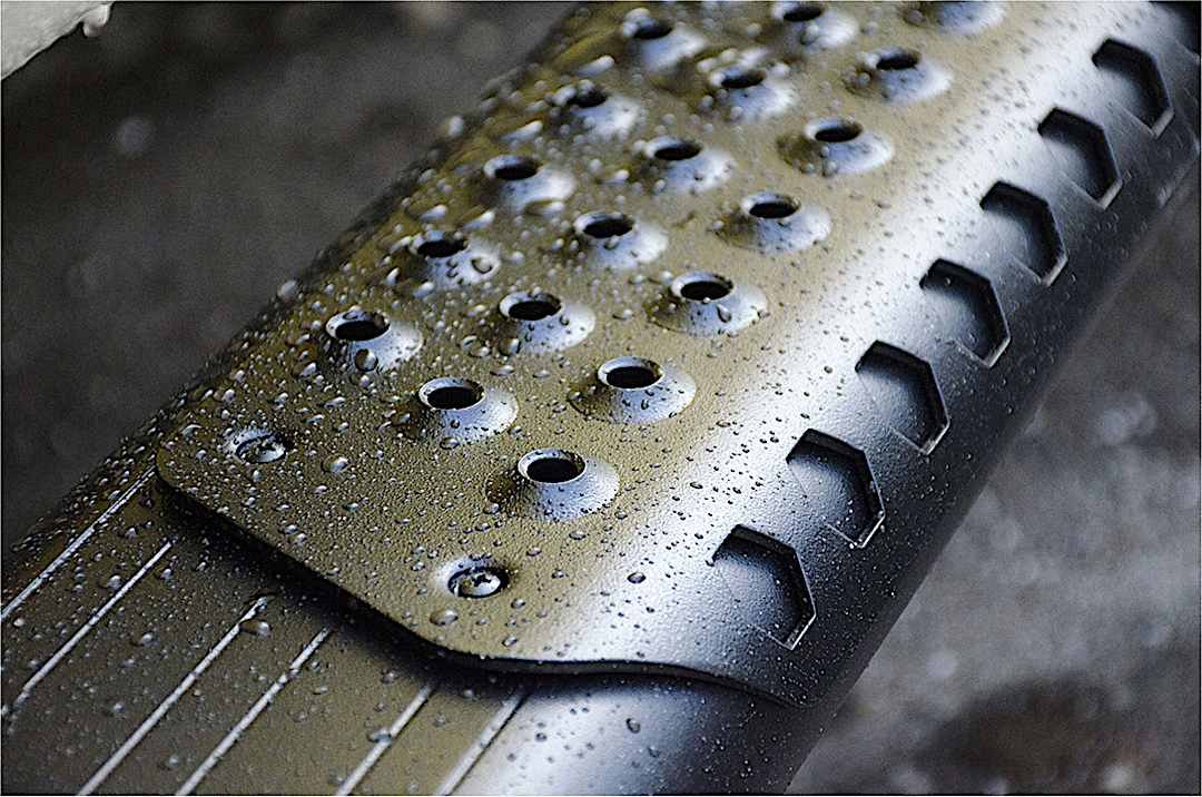 - No-slip aluminum step pads designed with circular, wear-resistant treads for superior traction