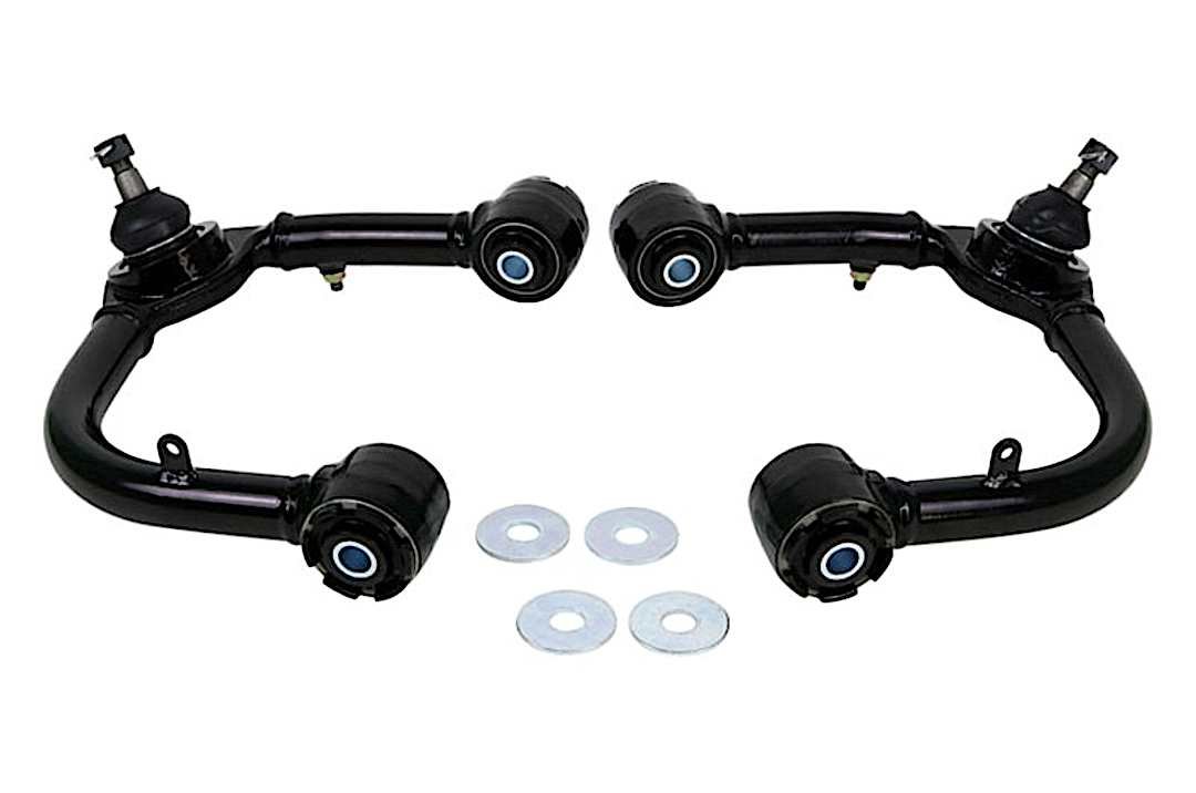 A short fall of the modern day IFS 4WD is the adjustment range provided for successful wheel alignments, this becomes even more of an issue when the vehicle is lifted by more than 1 inch. Not only does the vehicle run into camber and caster issues, but ball joint articulation and clearance issues to the coil over strut at ride and droop height. The new Nolathane offset UCA (Upper Control Arm) is an all-in-one solution for any vehicle that has been lifted between 30mm and 70mm. Providing an increase between +2.5 and +3.5 degrees of caster and up to 1.5 degrees of negative camber increase (figures quoted are based off an approximate 50mm/ 2 inch) along with greater clearance to the coil over strut and more articulation of the arm by virtue of new maintenance free GIIRO bushing technology.