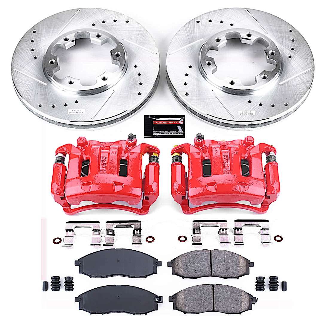 Powerstop 2-Wheel Set Power Stop® KC1176 Front Z23 Daily Carbon-Fiber Ceramic Brake Pad, Drilled & Slotted Rotor and Caliper Kit