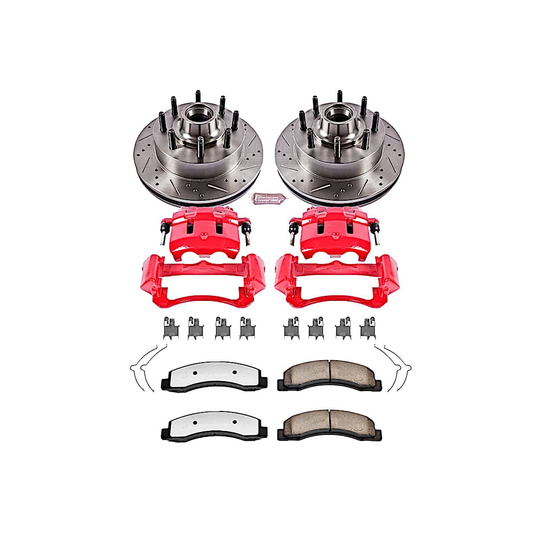 Powerstop 2-Wheel Set Power Stop® KC1392-36 Front Z36 Z36 Truck Carbon-Fiber Ceramic Brake Pad, Drilled & Slotted Rotor + Calipers