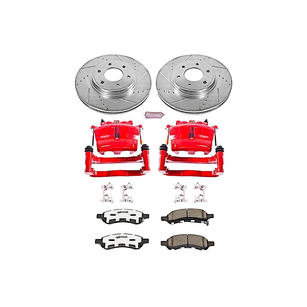 - Included: cross-drilled/slotted rotors and PowerStop Z26 carbon-infused pads