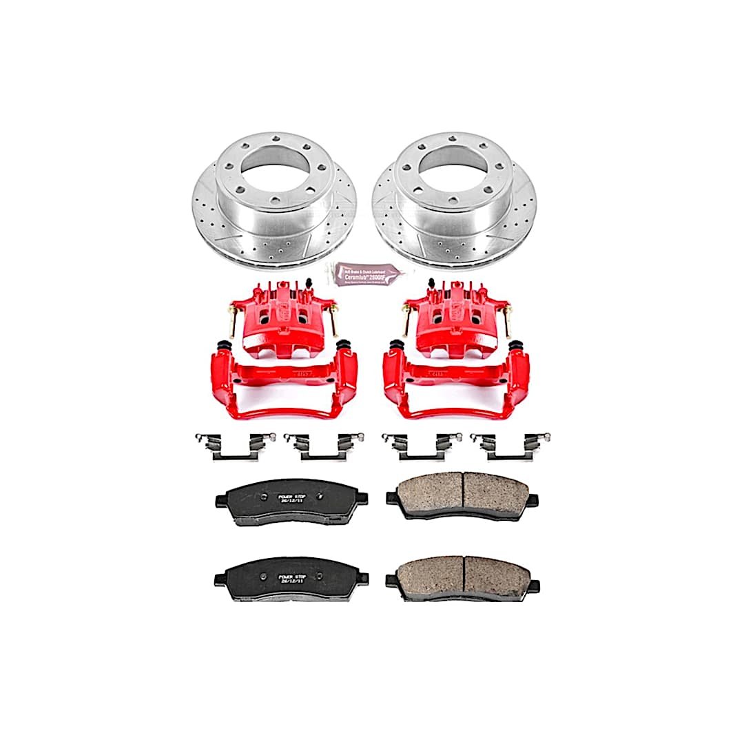 Powerstop 2-Wheel Set Power Stop® KC1890A Rear Z23 Daily Carbon-Fiber Ceramic Brake Pad, Drilled & Slotted Rotor and Caliper Kit