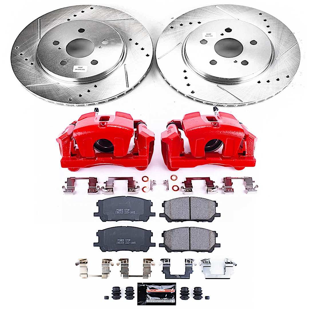 Powerstop 2-Wheel Set Power Stop® KC196 Front Z23 Daily Carbon-Fiber Ceramic Brake Pad, Drilled & Slotted Rotor and Caliper Kit