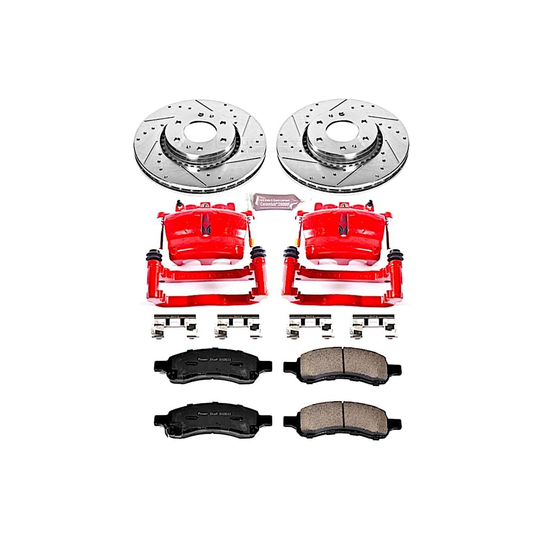 Powerstop 2-Wheel Set Power Stop® KC2059 Front Z23 Daily Carbon-Fiber Ceramic Brake Pad, Drilled & Slotted Rotor and Caliper Kit