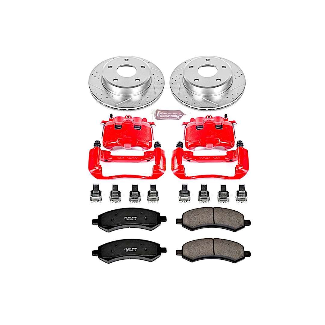 Powerstop 2-Wheel Set Power Stop® KC2193 Front Z23 Daily Carbon-Fiber Ceramic Brake Pad, Drilled & Slotted Rotor and Caliper Kit