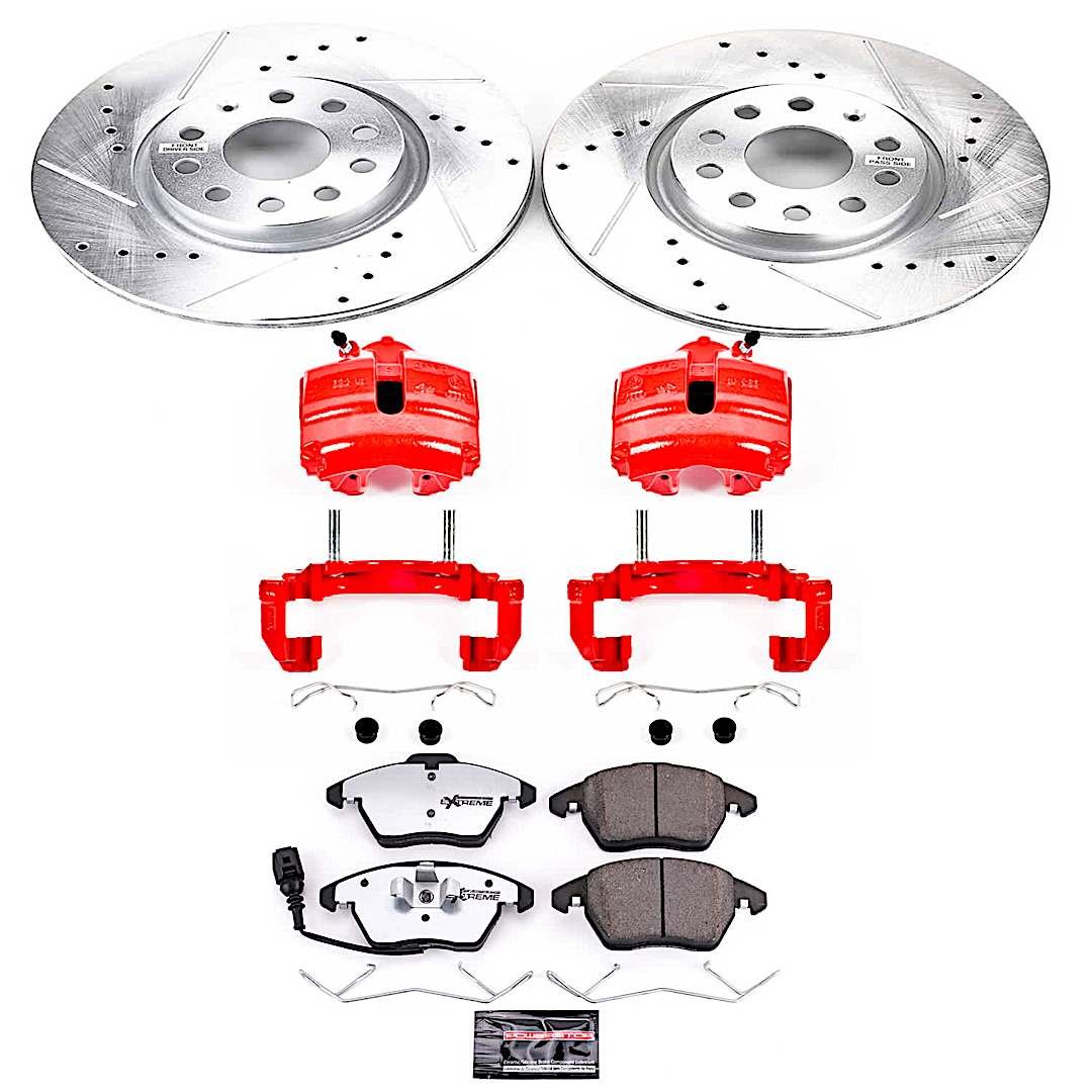 - Included: cross-drilled/slotted rotors and PowerStop Z26 carbon-infused pads