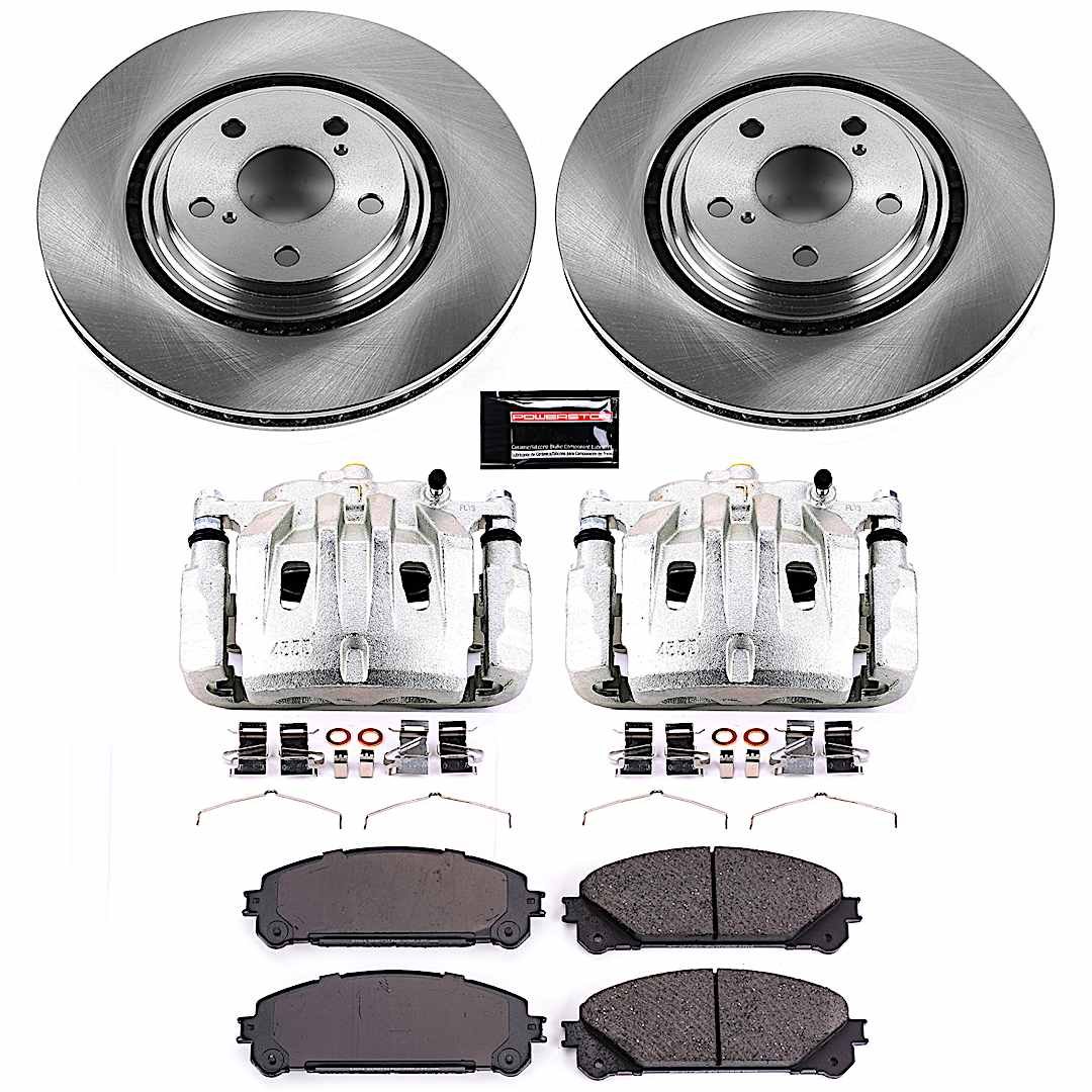 Powerstop 2-Wheel Set Power Stop® KCOE4713 Front OE Stock Replacement Low-Dust Ceramic Brake Pad, Rotor and Caliper Kit