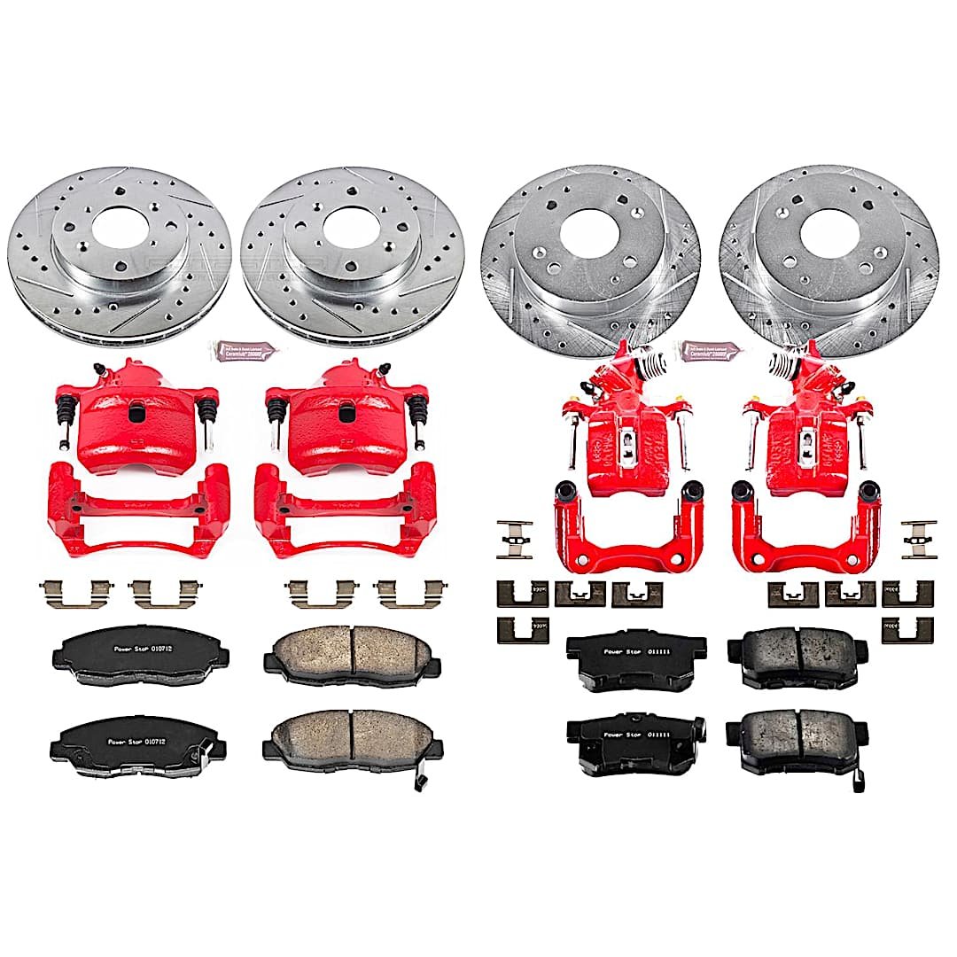Powerstop 4-Wheel Set Power Stop® KC1240A Front and Rear Z23 Daily Carbon-Fiber Ceramic Brake Pad, Drilled & Slotted Rotor and Caliper Kit