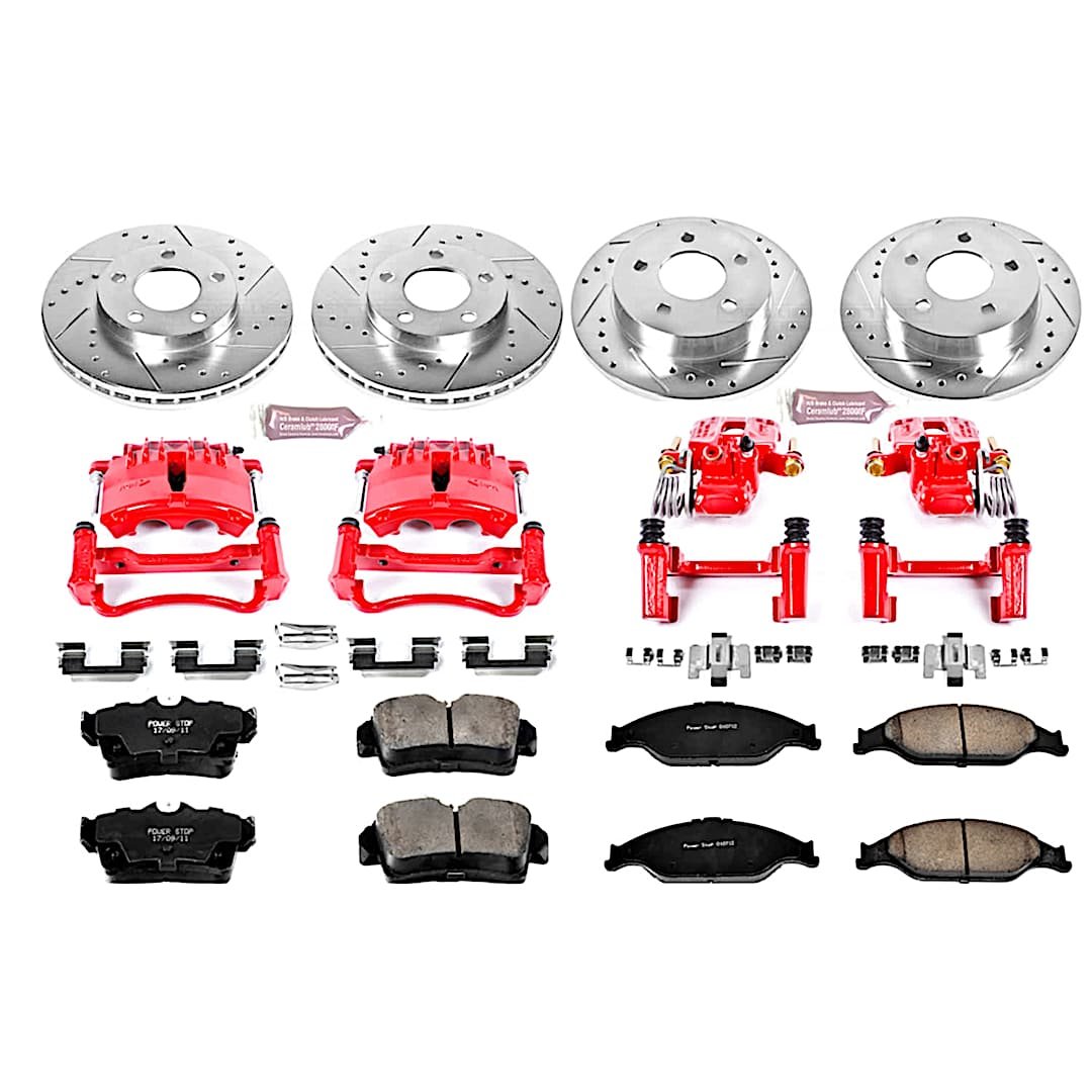 Powerstop 4-Wheel Set Power Stop® KC1302 Front and Rear Z23 Daily Carbon-Fiber Ceramic Brake Pad, Drilled & Slotted Rotor and Caliper Kit