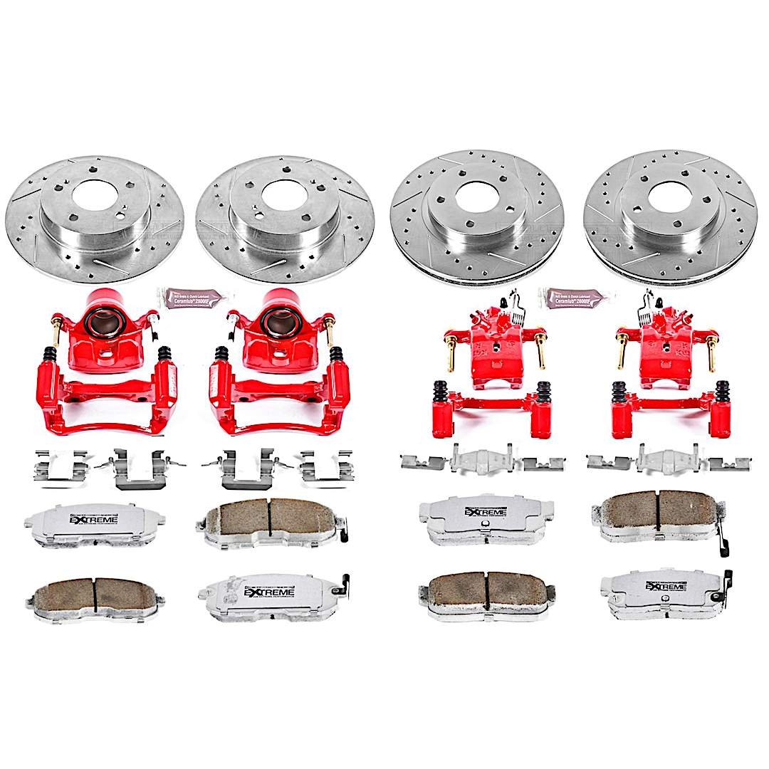 - Included: cross-drilled/slotted rotors and PowerStop Z26 carbon-infused pads