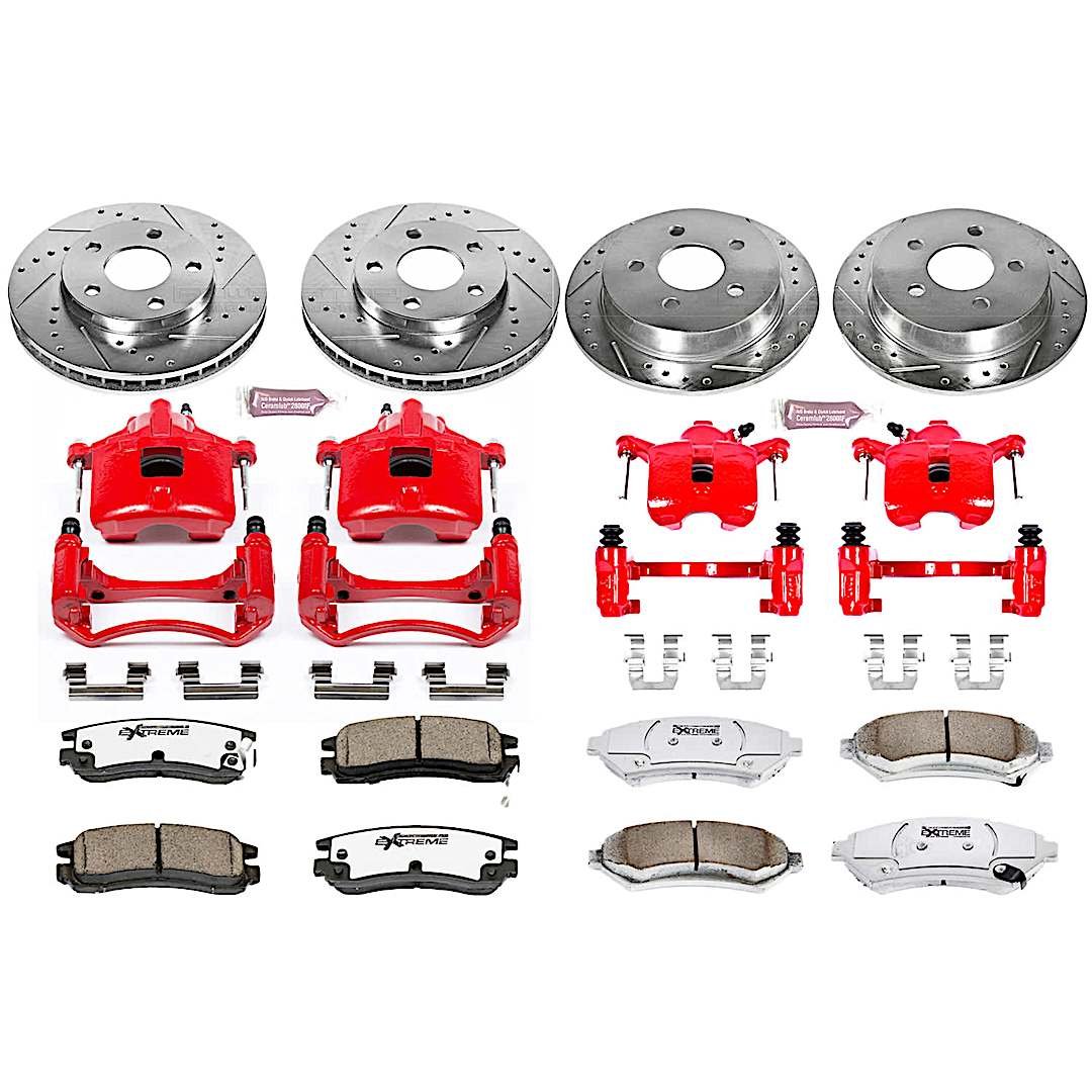 - Included: cross-drilled/slotted rotors and PowerStop Z26 carbon-infused pads