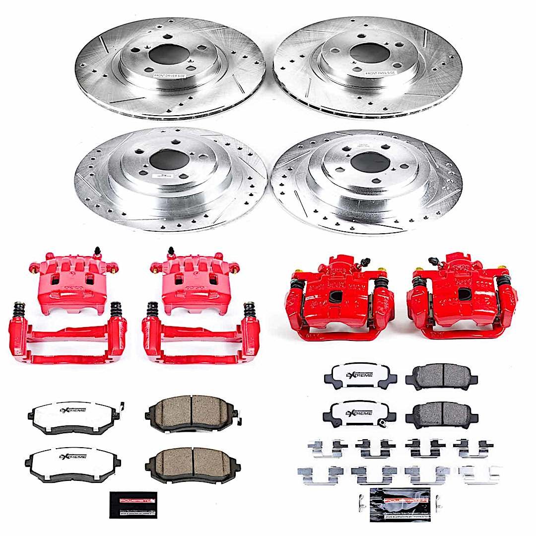 - Included: cross-drilled/slotted rotors and PowerStop Z26 carbon-infused pads