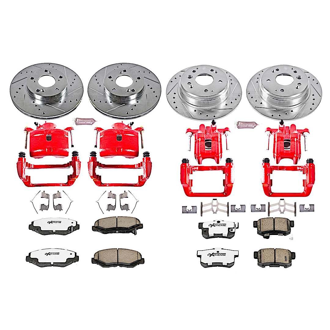 Powerstop 4-Wheel Set Power Stop® KC5389-26 Front and Rear Z26 Muscle Carbon-Fiber Ceramic Brake Pad, Drilled & Slotted Rotor and Caliper Kit