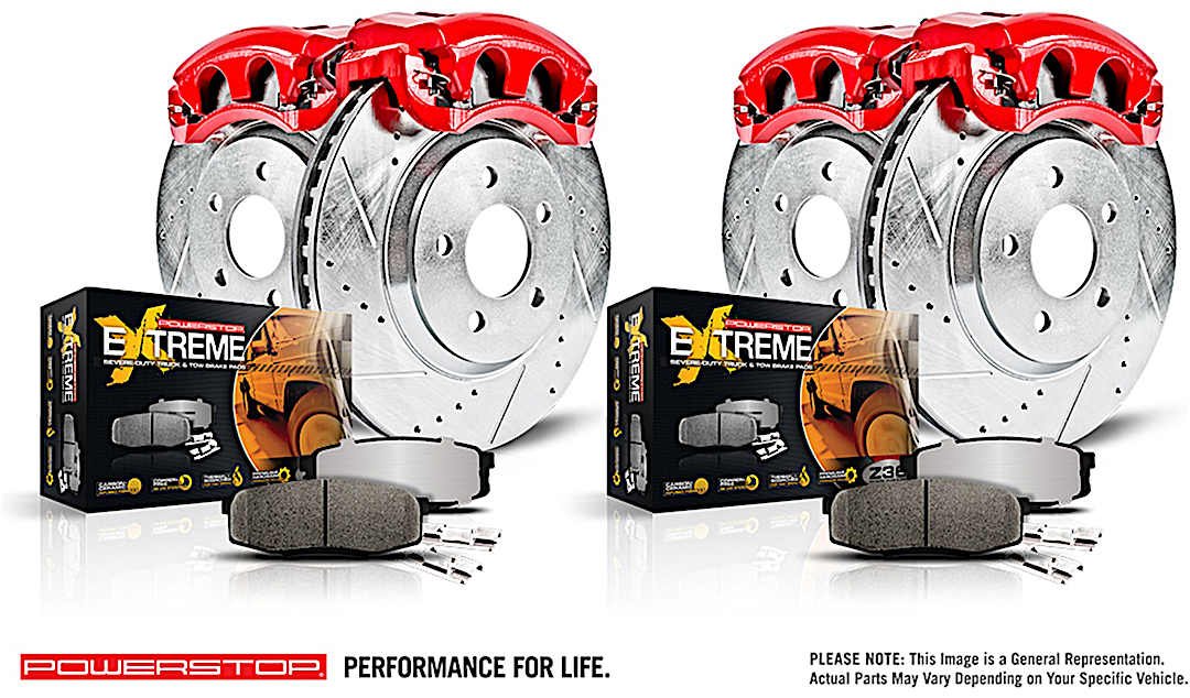 Powerstop 4-Wheel Set Power Stop® KC7939-36 Front and Rear Z36 Z36 Truck Carbon-Fiber Ceramic Brake Pad, Drilled & Slotted Rotor + Calipers