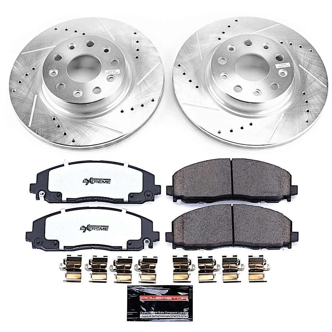 - Included: cross-drilled/slotted rotors that are zinc-plated and PowerStop Z36 carbon-fiber ceramic pads