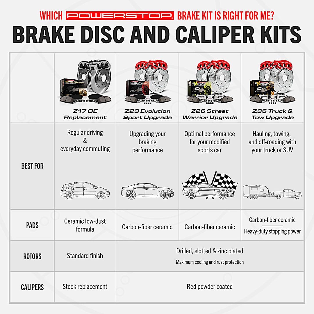 Replacing your brakes is an investment, so if you’re looking for an affordable, straightforward swap for your stock brake system, choose the factory equivalent PowerStop Z17 OE Replacement brake disc and caliper kit. You’ll enjoy significant cost savings over going to the dealership and restore your brakes to prime condition in no time.