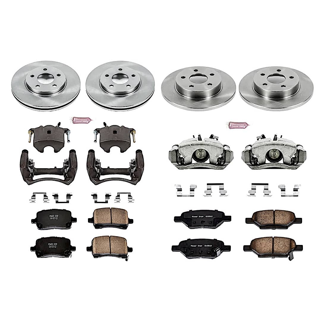 Powerstop 4-Wheel Set Power Stop® KCOE1618 Front and Rear OE Stock Replacement Low-Dust Ceramic Brake Pad, Rotor and Caliper Kit