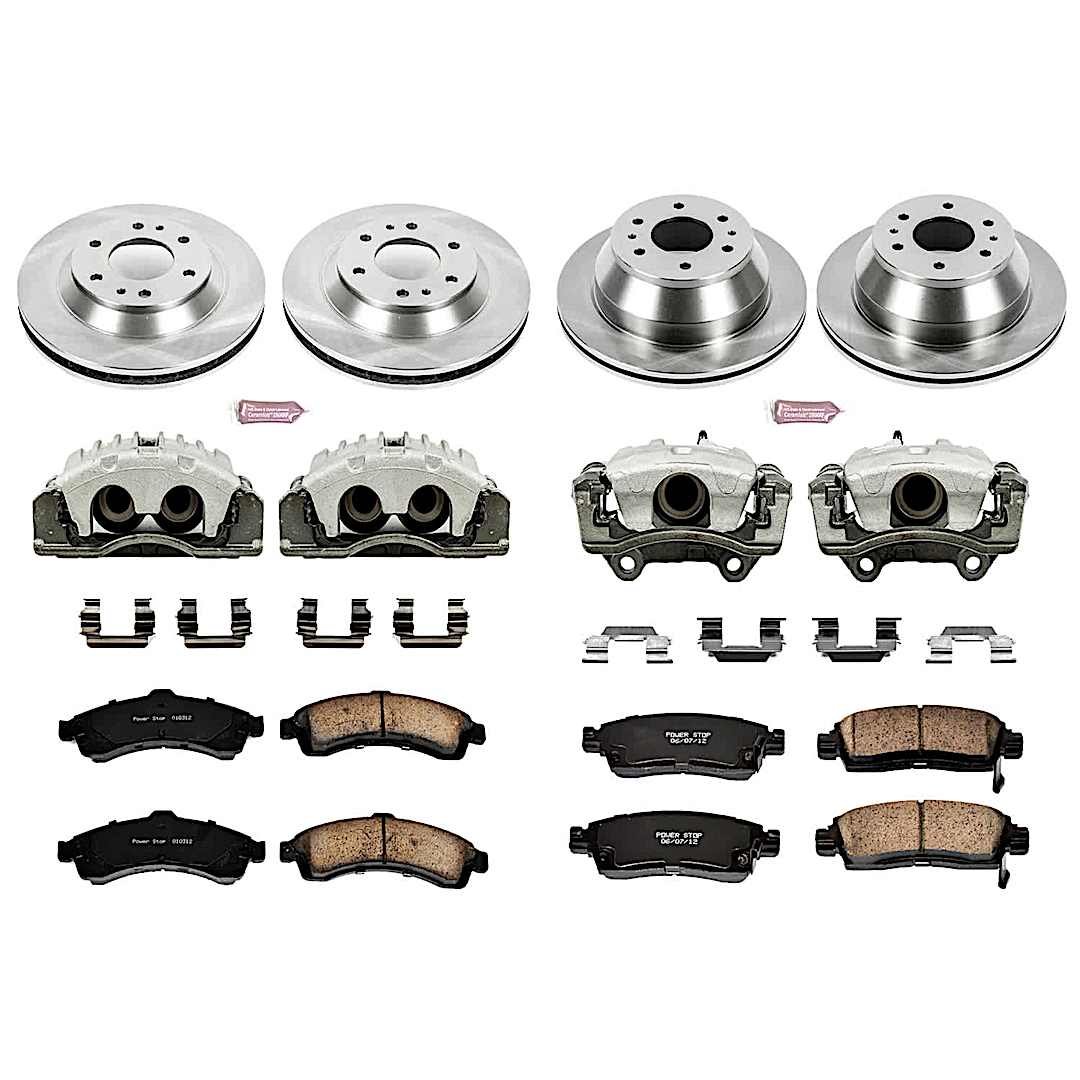 Powerstop 4-Wheel Set Power Stop® KCOE2058 Front and Rear OE Stock Replacement Low-Dust Ceramic Brake Pad, Rotor and Caliper Kit