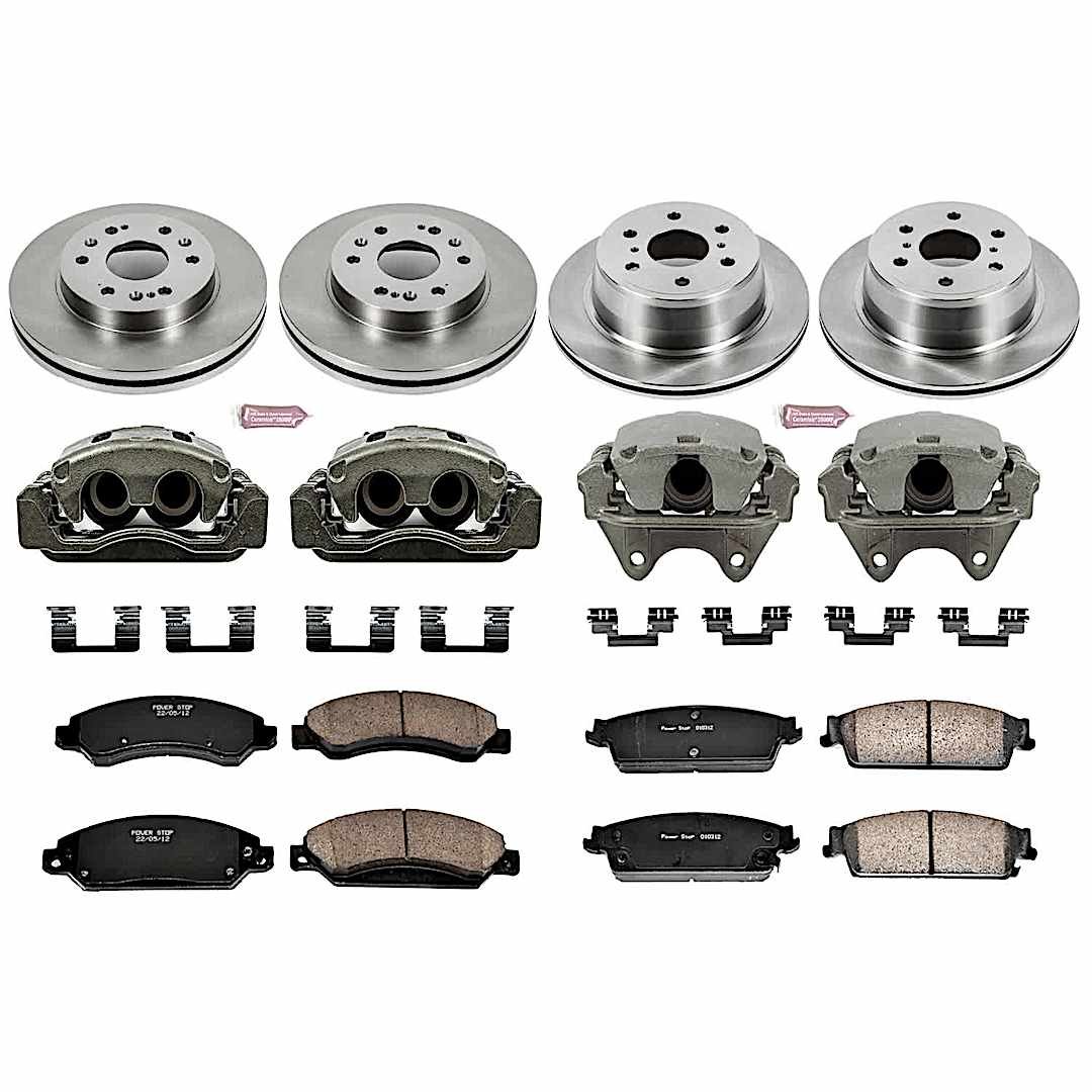 Powerstop 4-Wheel Set Power Stop® KCOE2068 Front and Rear OE Stock Replacement Low-Dust Ceramic Brake Pad, Rotor and Caliper Kit
