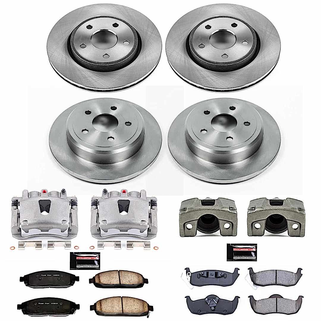 Powerstop 4-Wheel Set Power Stop® KCOE2220A Front and Rear OE Stock Replacement Low-Dust Ceramic Brake Pad, Rotor and Caliper Kit