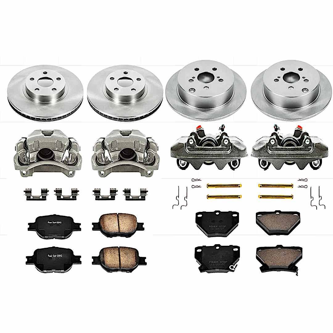 Powerstop 4-Wheel Set Power Stop® KCOE2314A Front and Rear OE Stock Replacement Low-Dust Ceramic Brake Pad, Rotor and Caliper Kit