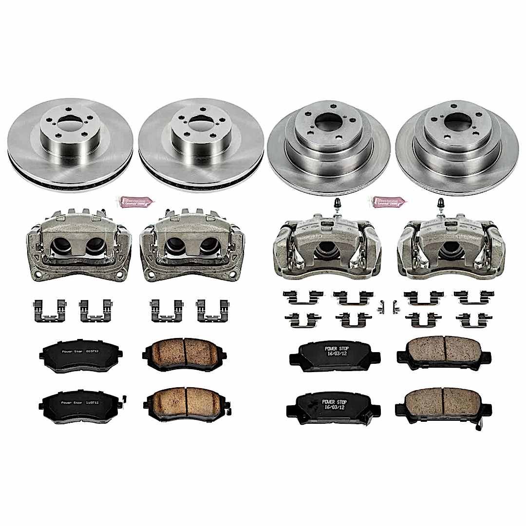 Powerstop 4-Wheel Set Power Stop® KCOE2377 Front and Rear OE Stock Replacement Low-Dust Ceramic Brake Pad, Rotor and Caliper Kit