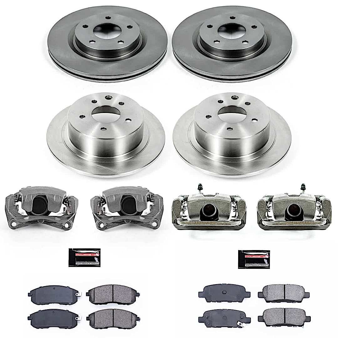 Powerstop 4-Wheel Set Power Stop® KCOE242 Front and Rear OE Stock Replacement Low-Dust Ceramic Brake Pad, Rotor and Caliper Kit