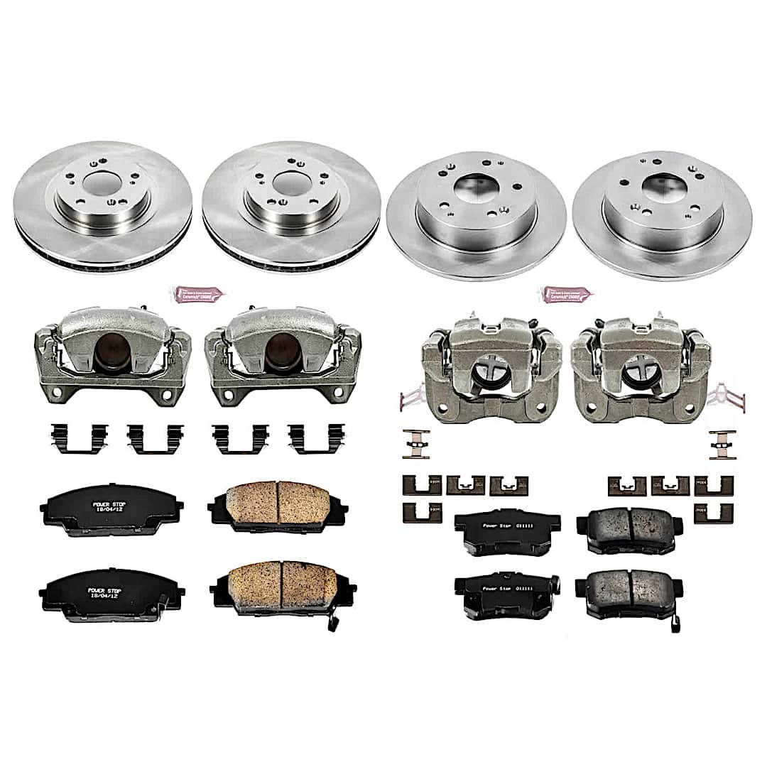 Powerstop 4-Wheel Set Power Stop® KCOE2441 Front and Rear OE Stock Replacement Low-Dust Ceramic Brake Pad, Rotor and Caliper Kit