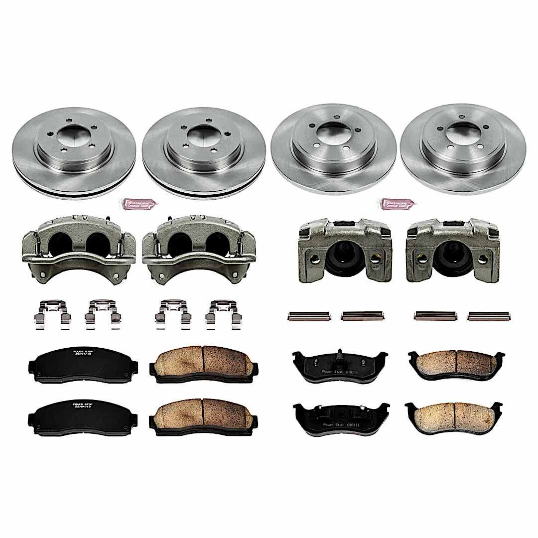 Powerstop 4-Wheel Set Power Stop® KCOE2722 Front and Rear OE Stock Replacement Low-Dust Ceramic Brake Pad, Rotor and Caliper Kit