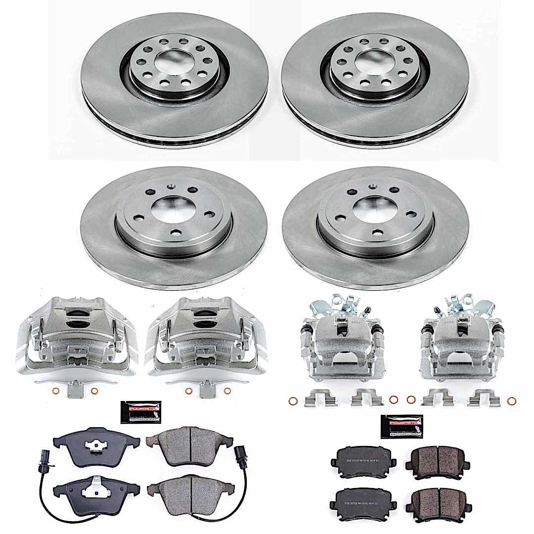 Powerstop 4-Wheel Set Power Stop® KCOE4065 Front and Rear OE Stock Replacement Low-Dust Ceramic Brake Pad, Rotor and Caliper Kit