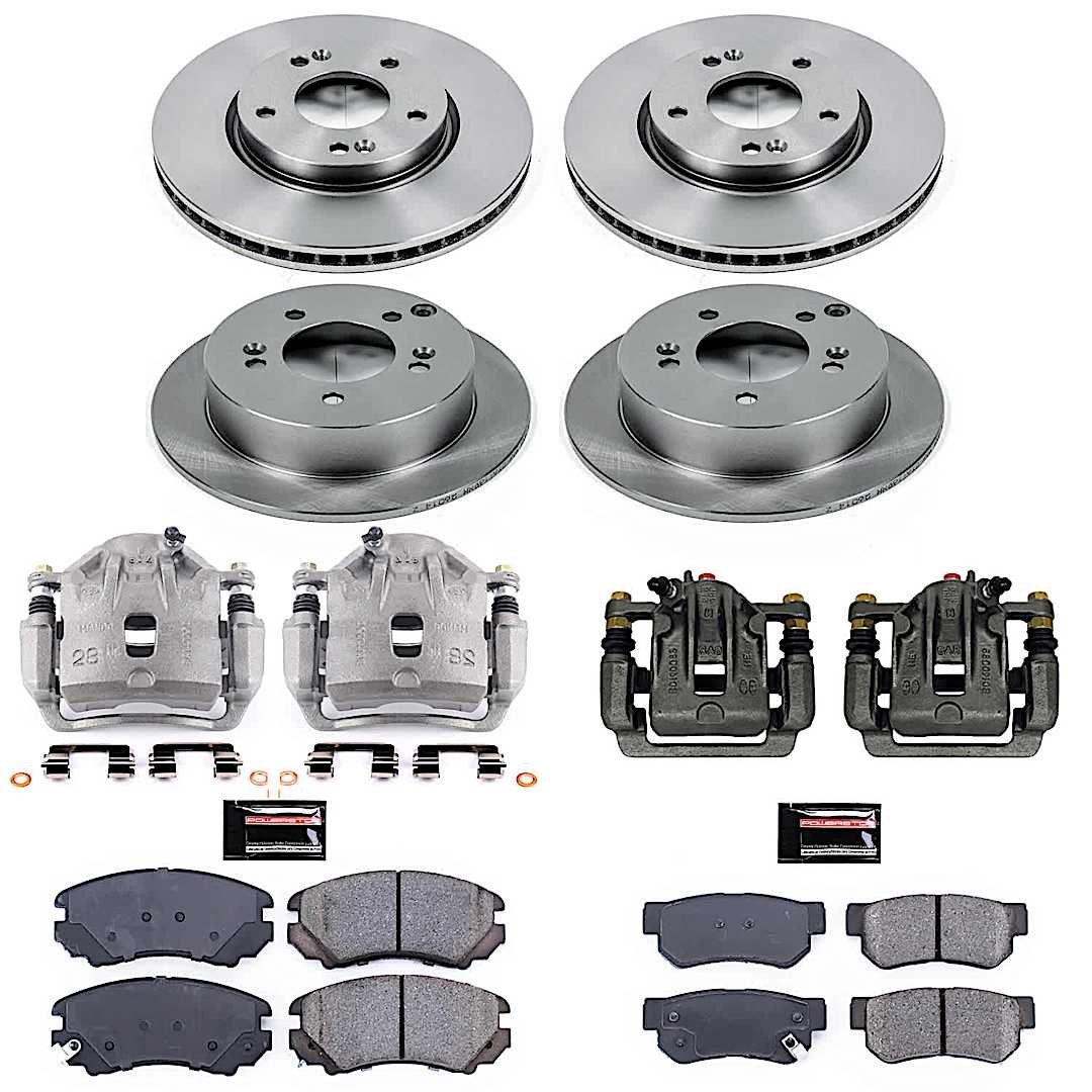 Powerstop 4-Wheel Set Power Stop® KCOE4449A Front and Rear OE Stock Replacement Low-Dust Ceramic Brake Pad, Rotor and Caliper Kit