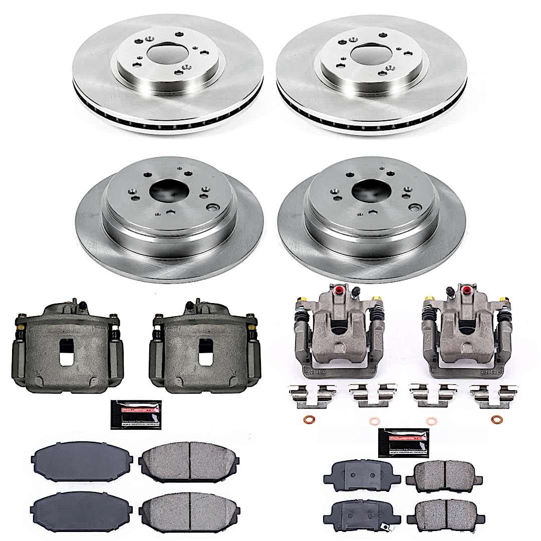 Powerstop 4-Wheel Set Power Stop® KCOE4459 Front and Rear OE Stock Replacement Low-Dust Ceramic Brake Pad, Rotor and Caliper Kit