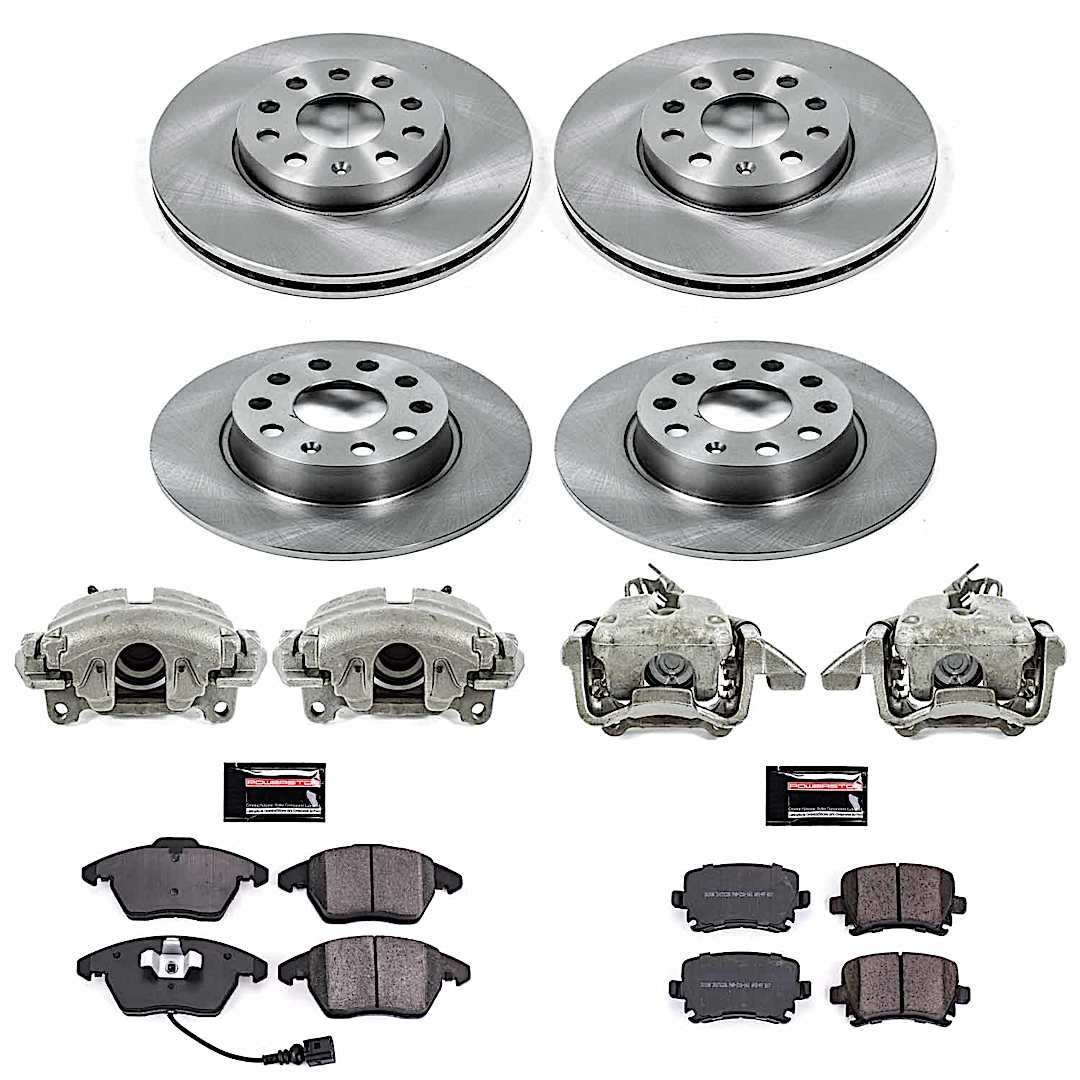 Powerstop 4-Wheel Set Power Stop® KCOE7837 Front and Rear OE Stock Replacement Low-Dust Ceramic Brake Pad, Rotor and Caliper Kit