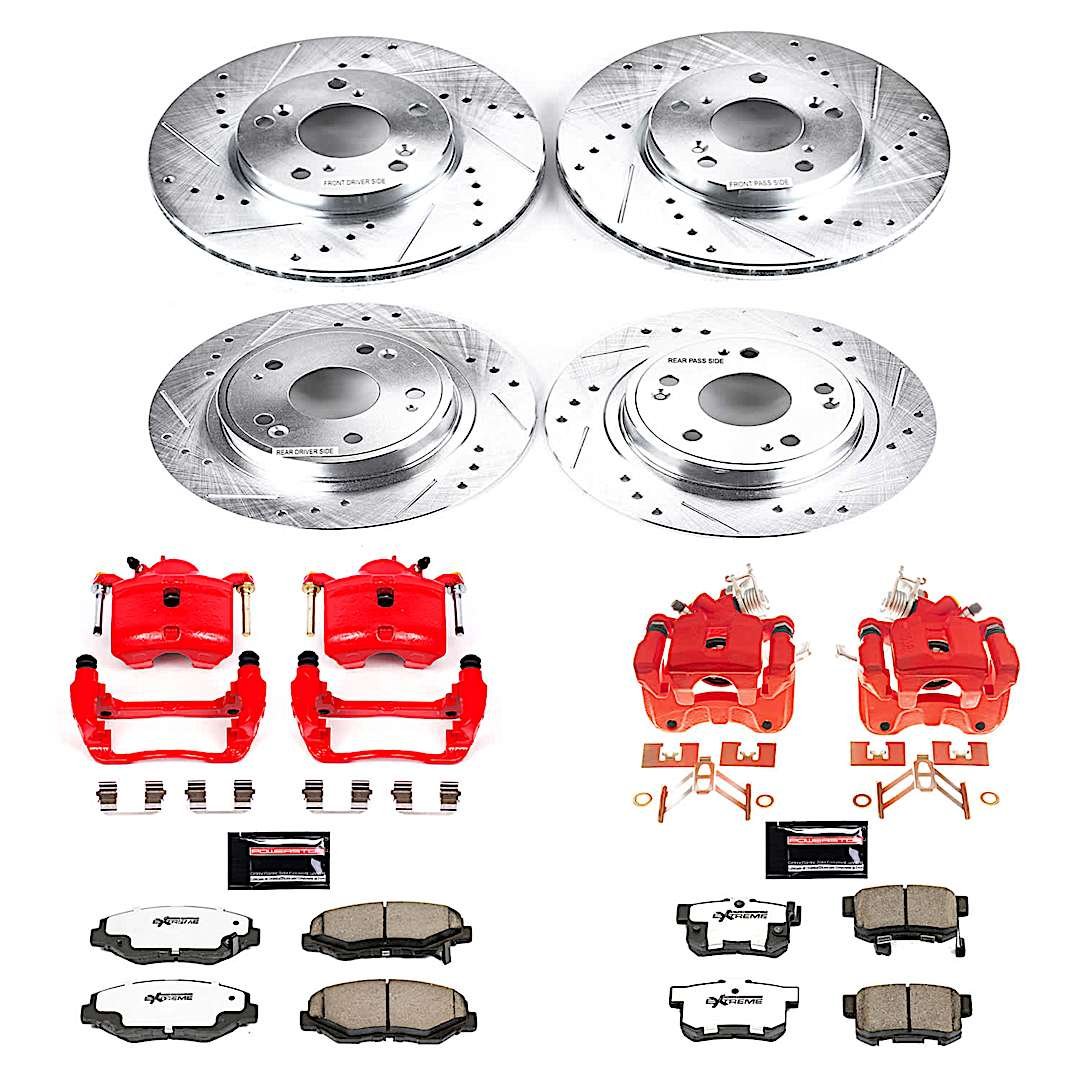 - Included: cross-drilled/slotted rotors and PowerStop Z26 carbon-infused pads