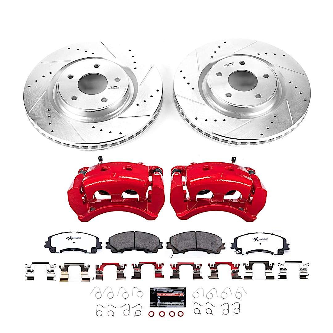 - Included: cross-drilled/slotted rotors and PowerStop Z26 carbon-infused pads