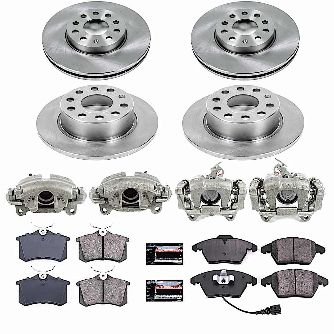 Powerstop KCOE5749A Front and Rear Brake Disc and Caliper Kit, Plain Surface 5 Lugs 254.7 mm Natural Caliper, Ceramic, Z17 OE Replacement