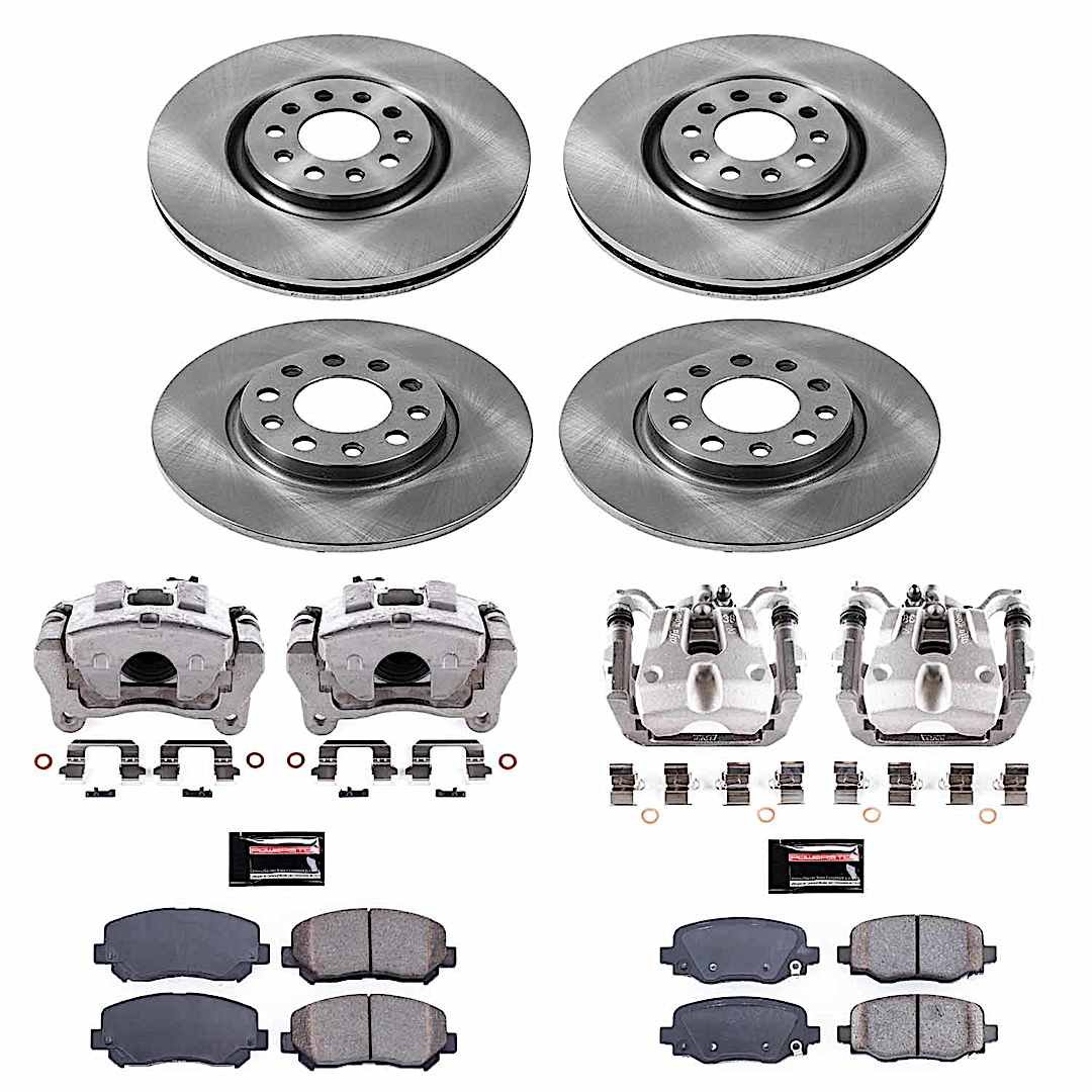 Powerstop KCOE6539 4-Wheel Set Front and Rear Brake Disc and Caliper Kit, Natural Caliper, Ceramic, 5 Lugs, Z17 OE Replacement, Models with 1 piston front calipers.