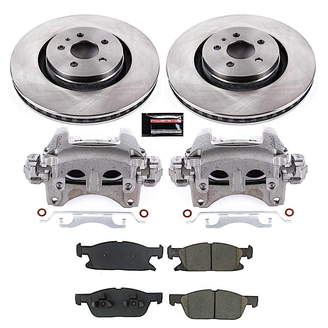 Powerstop KCOE8321 Front Brake Disc and Caliper Kit, Plain Surface 5 Lugs Natural Caliper, Ceramic, AWD, Z17 OE Replacement