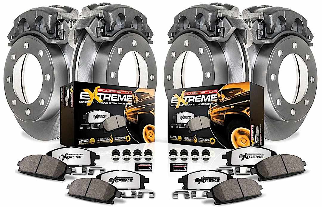 Powerstop MDCK4416 Front and Rear Brake Disc and Caliper Kit, Plain Surface 8 Lugs – Front; 10 Lugs – Rear Natural, Carbon Fiber Ceramic, Z36 Extreme Truck And Tow