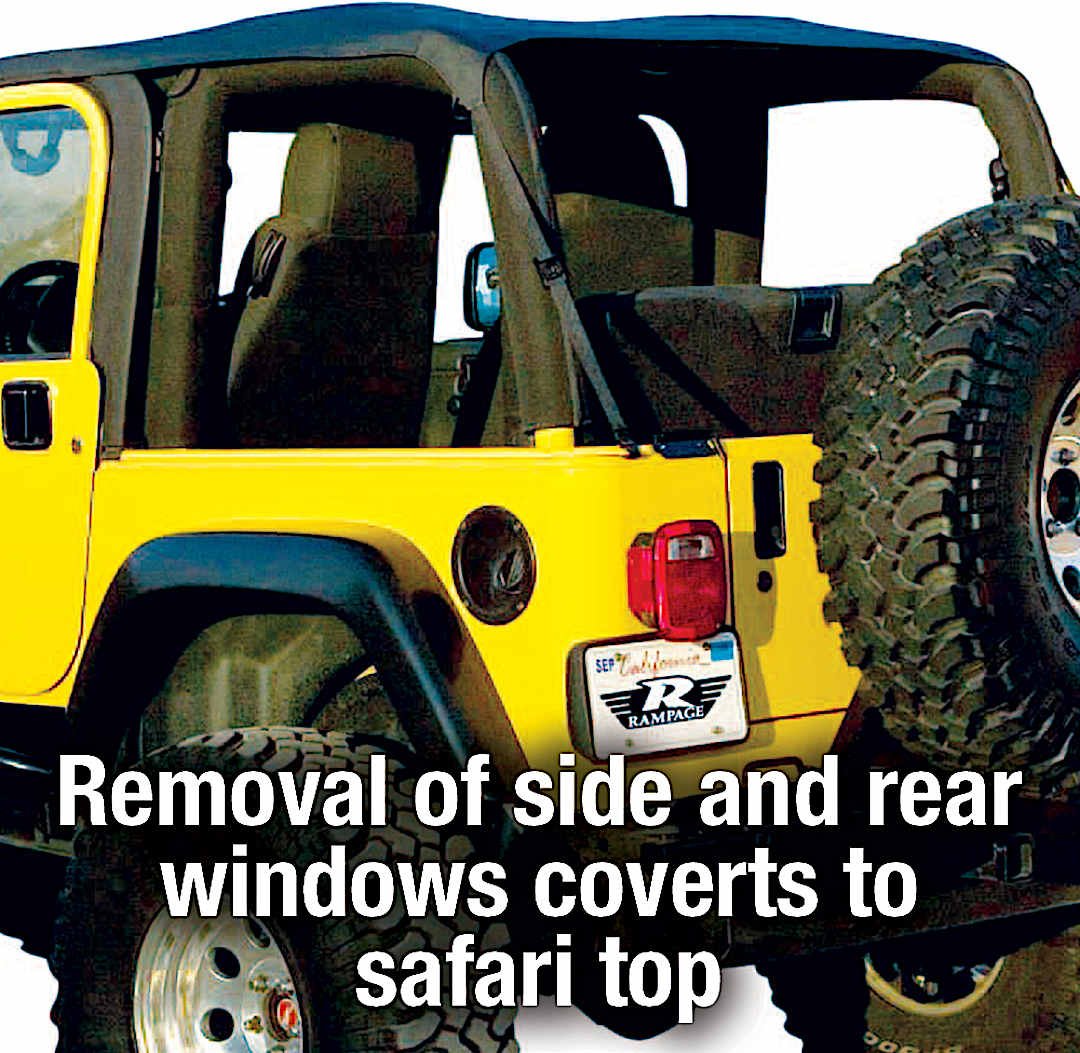 - Becomes safari top by simply unzipping the rear and side windows