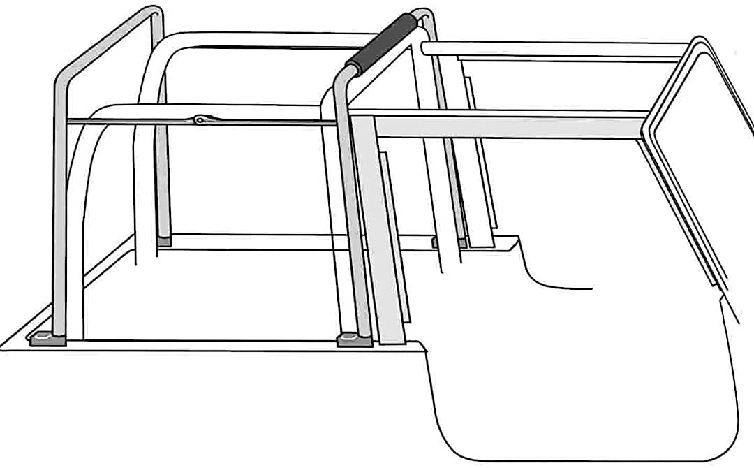 - Redesigned bow system uses factory mounting points and belt rail for easy installation and folds down