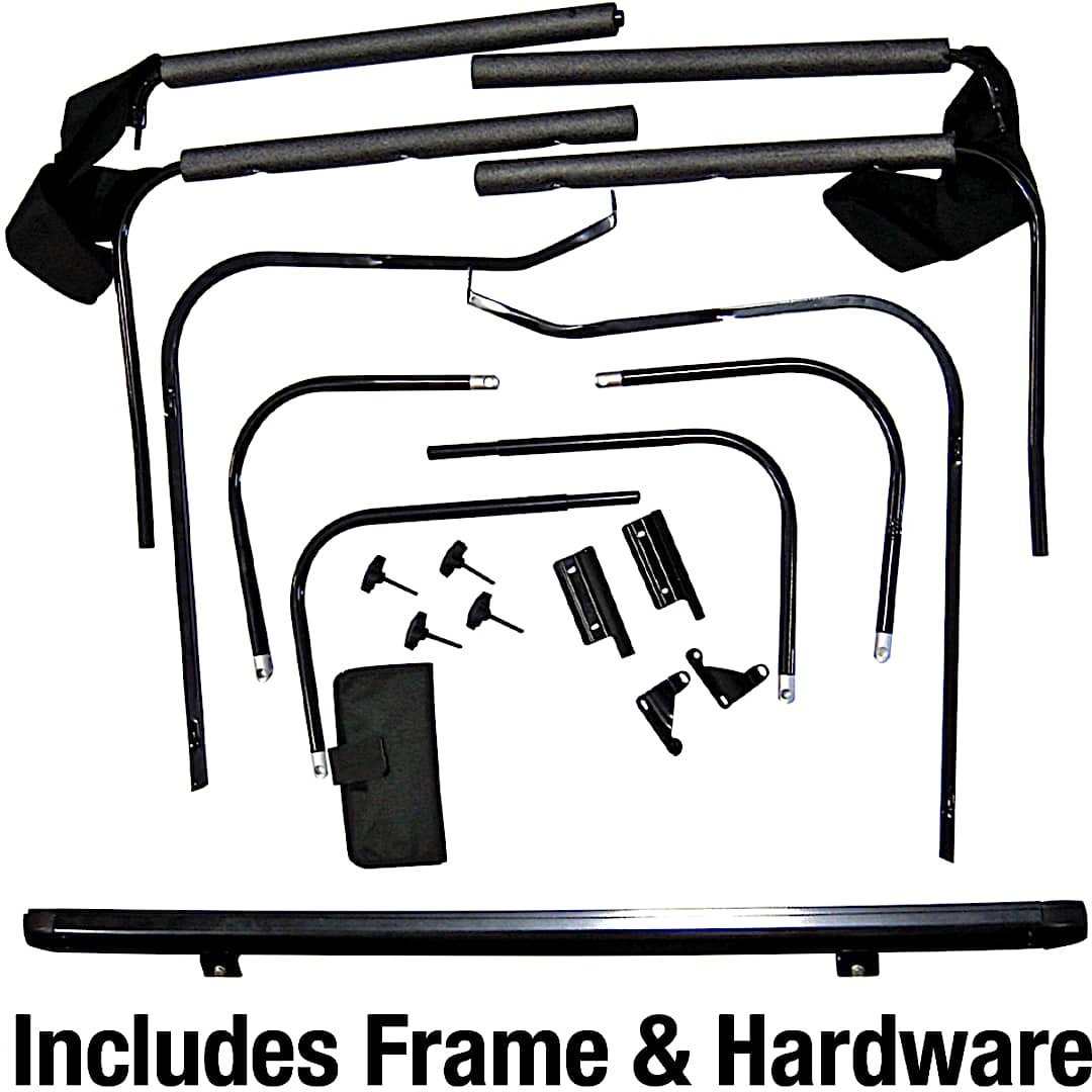 - All-in-one kit includes vinyl windows, new soft top, bows, frame and all hardware