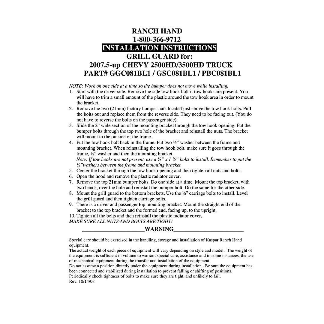 Ranch Hand GGC081BL1 Grille Guard, Powdercoated Black Carbon Steel