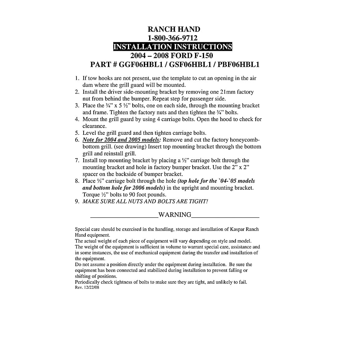 | 2008 Ford F-150 | King Ranch | All Engines | Retains Factory Tow Hook |